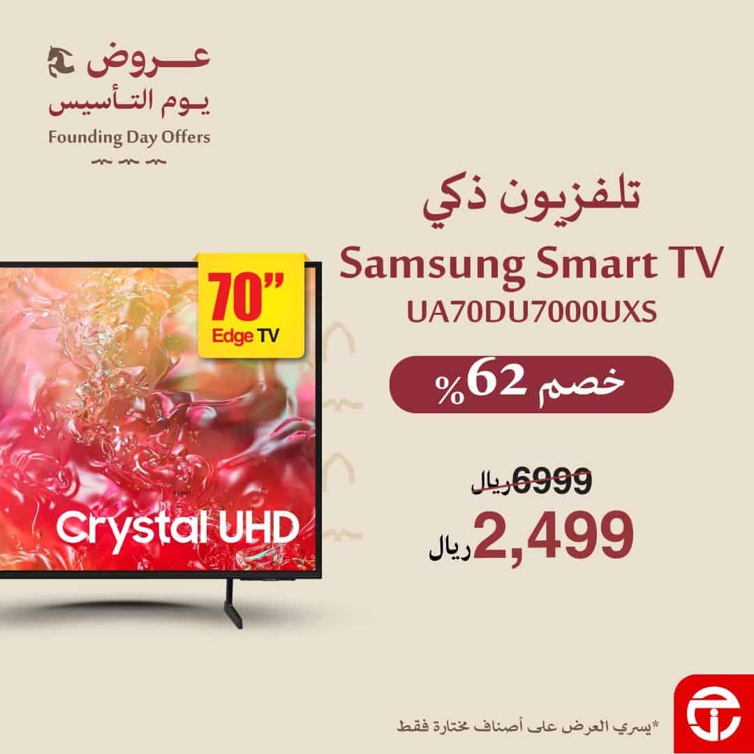• سامسونج 70 بوصة Crystal UHD: 2,499 ريال بدلاً من 6,999 ريال