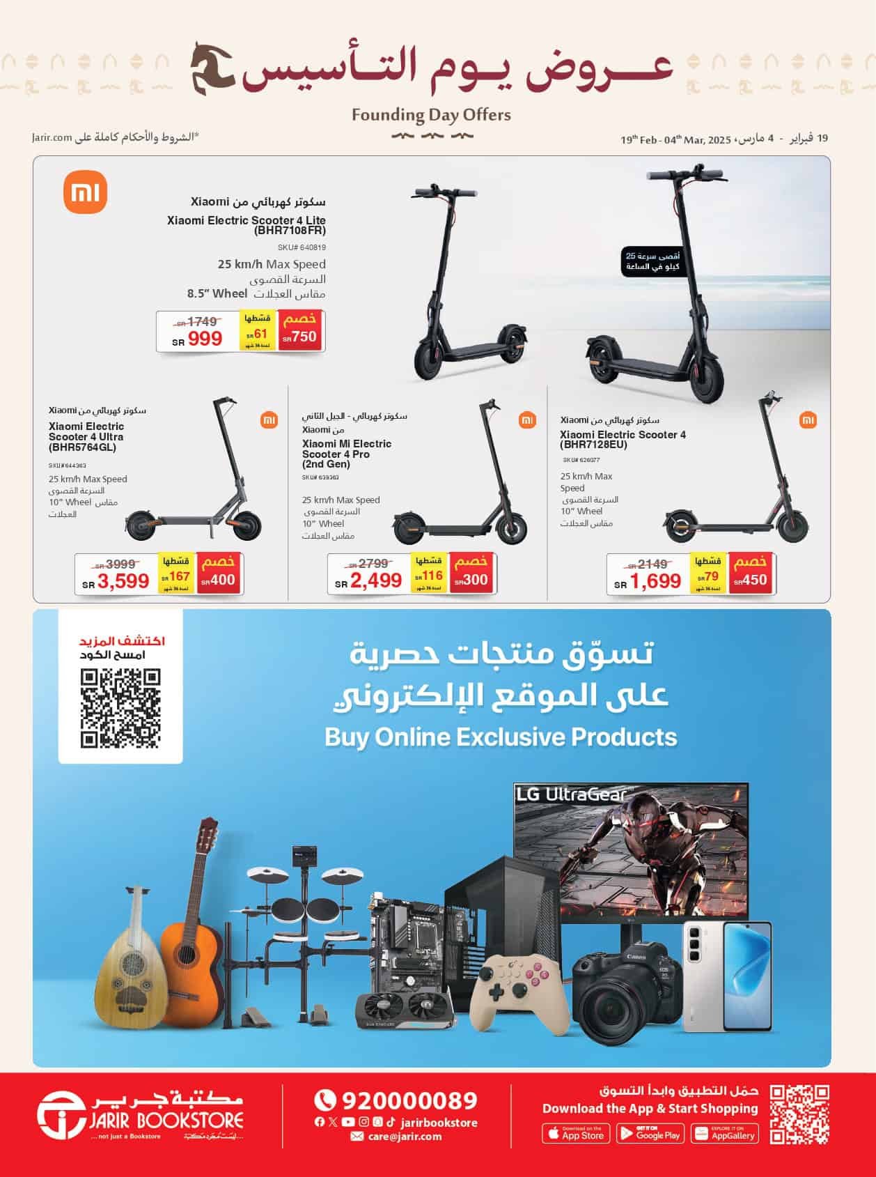 تطلق مكتبة جرير، الوجهة الرائدة في عالم التقنية والإلكترونيات، حملة تخفيضات استثنائية بمناسبة يوم التأسيس، حيث تقدم خصومات هائلة تصل إلى 62% على مجموعة واسعة من المنتجات التقنية.